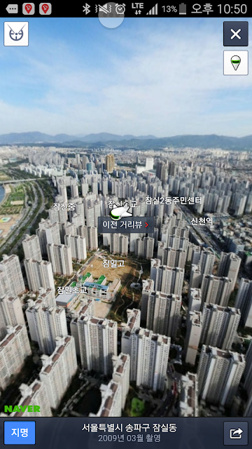 스트리트뷰와 항공뷰도 연동해 두었네요..